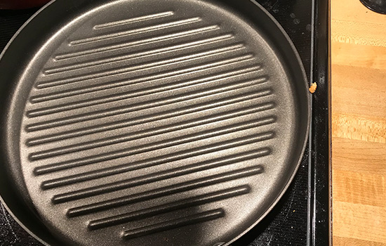 Get a griddle pan extremely hot, or use a grill if you have one but a griddle pan is relatively cheap and is good in all weather.